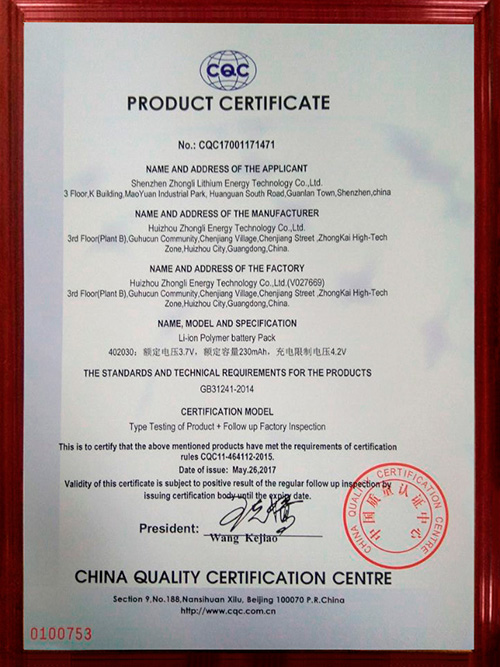 China Lithium Product Certification (Chinese version)